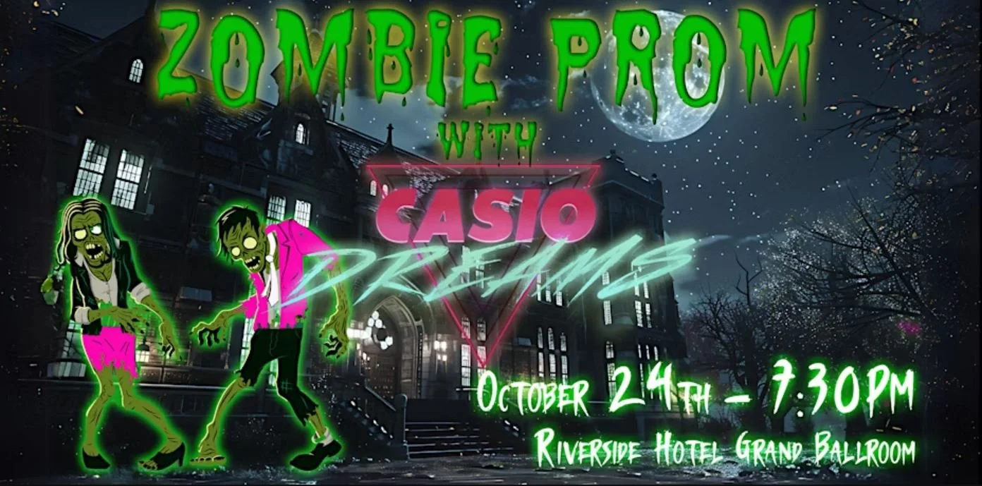 Casio Dreams brings the '80s back to life for one hauntingly unforgettable night of synth-pop, slow dances, and undead style. Costumes encouraged—think zombie corsages, tattered tuxes, and prom looks from beyond the grave. We’ll crown a Zombie Prom King & Queen, so dress to distress.
